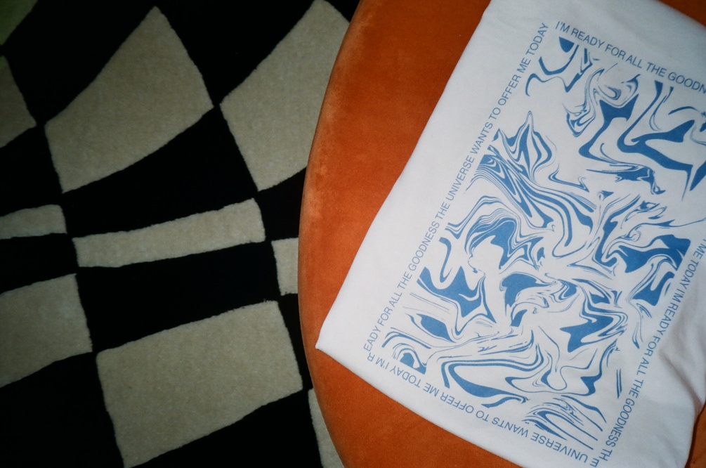 Warped angel numbers on the front, surrounded by your new favorite mantra to align with the Universe, with a glossary of angel numbers on the back.
